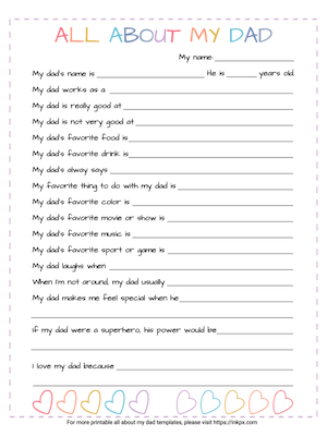 - My Dad's Name Is: A space to write the father's full name or nickname.