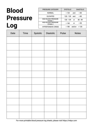 Black and White Blood Pressure Log Sheets