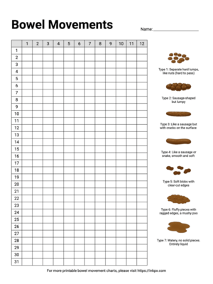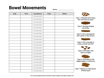 - Date and Time: Note when each bowel movement occurs to identify patterns or irregularities.
