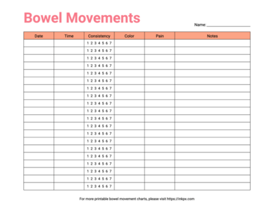 A bowel movement chart is a simple tracking tool used to record details about bowel habits. It helps individuals and healthcare providers monitor digestive health, identify irregular patterns, and manage conditions such as IBS, constipation, or diarrhea. These charts can support better communication with medical professionals and assist in evaluating the effects of diet, medication, or lifestyle changes on bowel function.