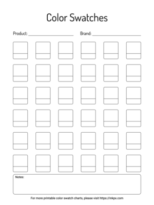 When creating a color swatch chart, consider incorporating a variety of elements to make it more useful and comprehensive. This should include a broad spectrum of colors, labeled with their specific names or codes for easy identification. Additionally, you may include tints, tones, and shades of each color, providing an at-a-glance reference to how colors might look when mixed with white, gray, or black. For an added layer of customization, consider sections for notes or annotations, allowing users to record their thoughts or project-specific details next to each color sample.