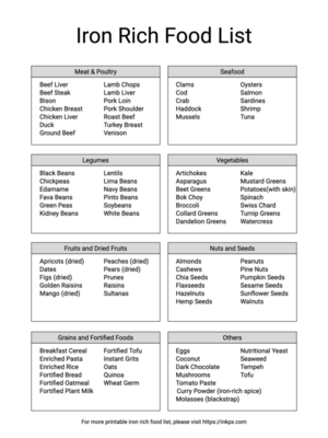 - Ready to Print: Once downloaded, your custom iron rich food list is print-ready for immediate use.