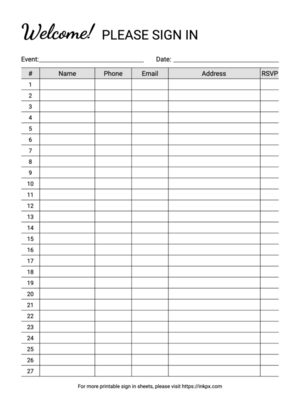 Download printable sign-in sheets for quick and efficient record-keeping. Available in PDF, PNG, and JPG formats, these templates are perfect for meetings, events, classrooms, or workplaces. Choose from A4 or US Letter sizes for seamless printing. Customize fonts, colors, and text to match your specific needs. Keep attendance organized with professional, easy-to-use templates.