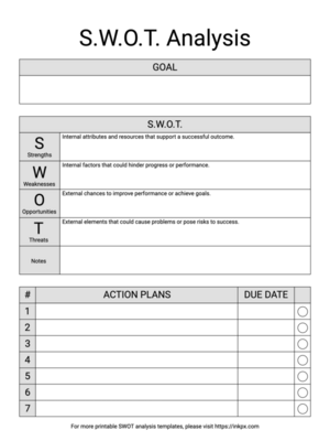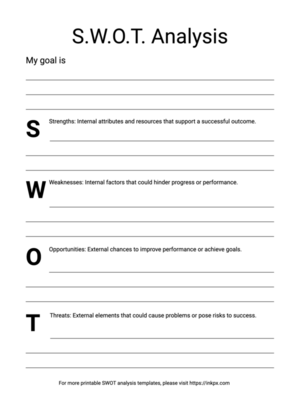 A SWOT analysis template is a structured planning tool used to evaluate four key aspects of a business, project, or personal goal: Strengths, Weaknesses, Opportunities, and Threats. It helps organize thoughts, identify challenges, and uncover areas for growth or improvement. By using a printable SWOT template, users can visually map out these factors in a clear and organized format, making strategic decisions more effective and focused.