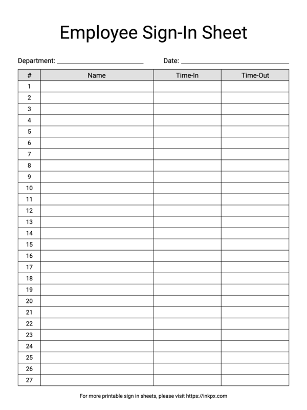 Free Printable Minimalist Employee Sign In Sheet