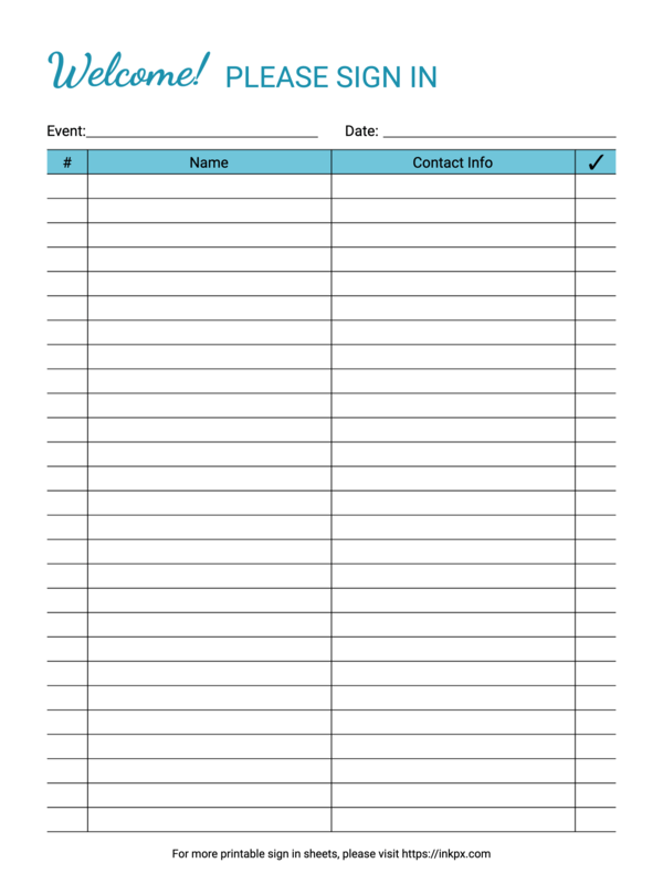 Free Printable Colored Simple Table Style Sign In Sheet