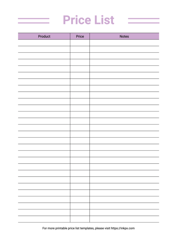 Free Printable Colorful Blank Simple Table Style Price List Template