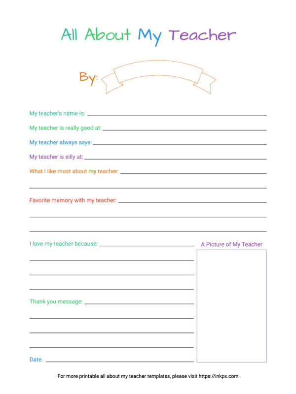 Free Printable Colorful Simple All About My Teacher Template