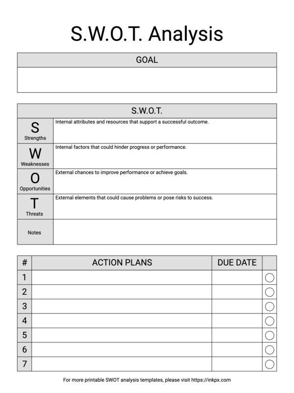 Free Printable SWOT Ananlysis with Planner Template