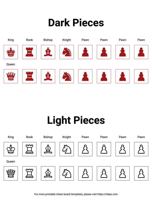 Free Printable Spartan Crimson Color Square Style Chess Board Pieces
