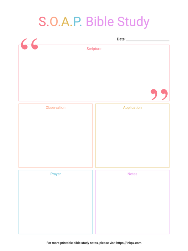Free Printable Colorful Simple S.O.A.P. Bible Study with Notes Template