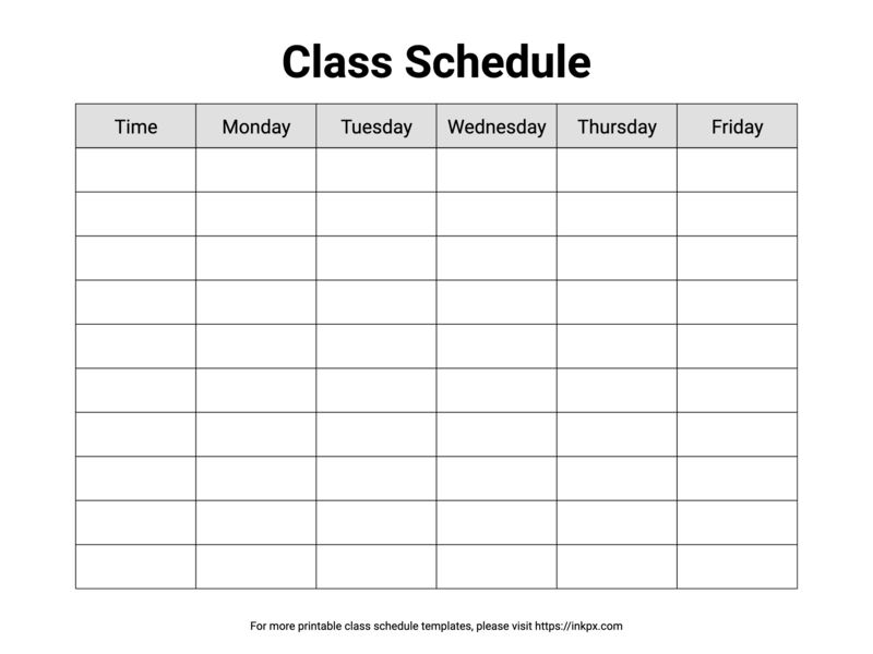 Free Printable Minimalist Class Schedule Template