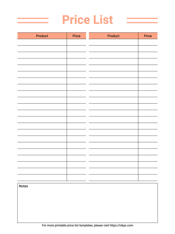 Free Printable Colored Blank Simple 2 Column Price List Template