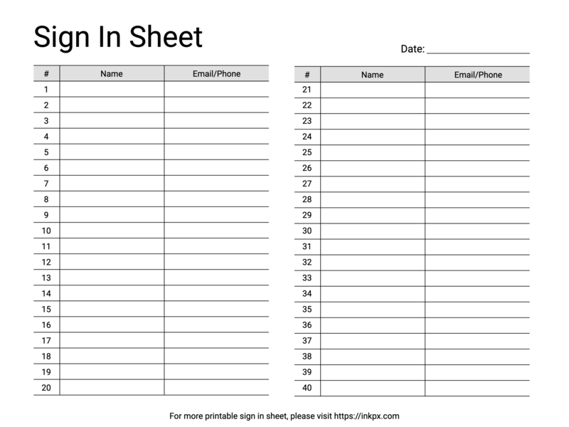 Free Printable Compact Landscape Table Style Sign In Sheet Template