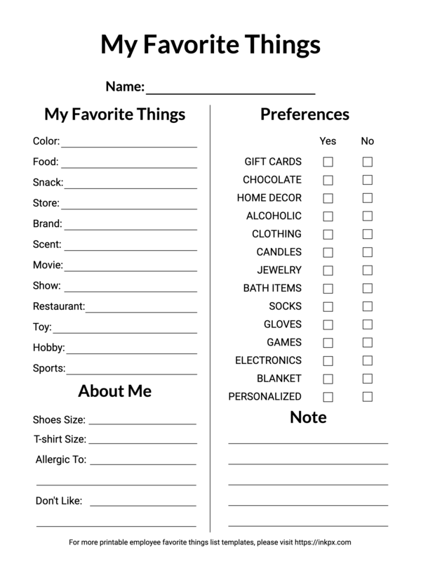 Free Printable Simple My Favorite Things Template