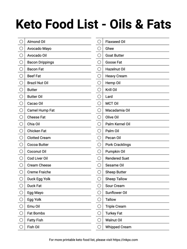 Free Printable Keto Food List - Oils & Fats
