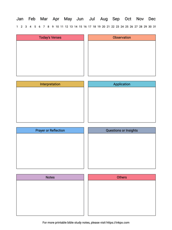 Free Printable Colorful Simple Daily Bible Study Notes Template