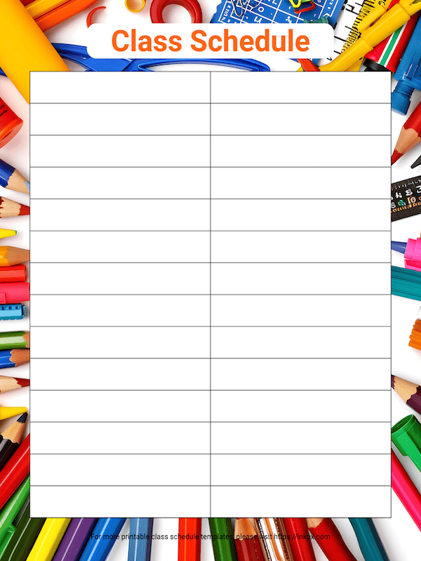 Free Printable Colorful Background Blank Daily Class Schedule Template